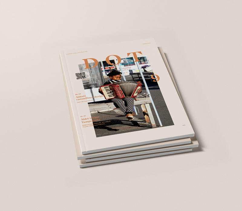 DOT magazine is a free publication of design and city culture at Tampere. It is published annually and produced by DesignOnTampere association. DOT magazine gathers local creatives together to produce insight of the design field and city spirit. The magazine can be found from 80 locations around the city. Below are all the six issues online (in Finnish).